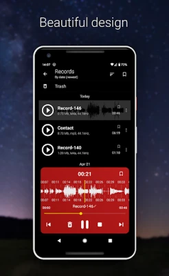 Oltre alla registrazione impeccabile, `AudioRecorder` ti offre un controllo completo sui tuoi file audio. Riproduci le tue registrazioni con facilità, anche in background, mentre visualizzi la forma d'onda per una navigazione precisa. Rinomina, condividi e importa file audio esterni, mantenendo la tua libreria sempre organizzata. La lista delle registrazioni ti permette di gestire ogni traccia e di aggiungere i file più importanti ai preferiti per un accesso rapido. E per rendere l'esperienza ancora più tua, personalizza l'aspetto dell'applicazione con una selezione di temi colorati, trasformando ogni interazione in un momento piacevole e su misura. Con `AudioRecorder`, la gestione audio è intuitiva, potente e personalizzabile.
