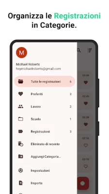 La praticità non si ferma alla registrazione e all'editing. Memo Vocale - Audio Registratore semplifica la gestione dei tuoi file grazie al trasferimento wireless, permettendoti di esportare le tue registrazioni sul computer in modo rapido e sicuro, senza la necessità di software aggiuntivi: basta essere connessi alla stessa rete. Per una tranquillità ancora maggiore, l'integrazione nativa con Google Drive sincronizza automaticamente le tue registrazioni con il tuo account cloud. Questo significa accesso istantaneo da tutti i tuoi dispositivi e una copia di sicurezza sempre disponibile, proteggendo i tuoi preziosi dati da perdite o danni imprevisti. Scegli Memo Vocale - Audio Registratore per un'esperienza audio senza compromessi.