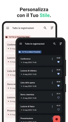 Registratore Vocale è un dittafono professionale e facile da usare per Android. Registra note vocali, discorsi e musica in alta qualità. Ideale per studenti, giornalisti e musicisti, permette di raggruppare e taggare facilmente le registrazioni importanti e contrassegnare frammenti specifici.